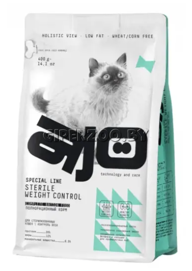 AJO Cat Sterile Weight Control (курица), 400 гр – сухой корм для стерилизованных кошек контроль веса.