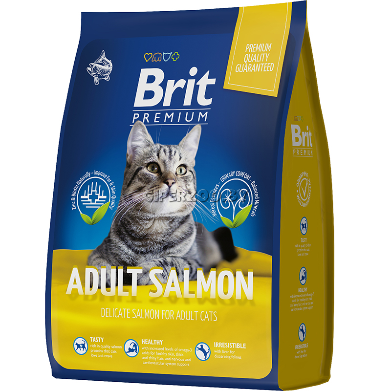 Brit Premium Cat Adult Salmon 2 кг - предназначен для взрослых кошек всех пород. Сбалансированный состав содержит все витамины и минералы, необходимые для ежедневного здорового питания вашего питомца. Корм поможет сохранить здоровье и активность вашего питомца, а лосось в составе обеспечивает притягательный аромат и вкус, который не оставит равнодушным даже самых привередливых питомцев.