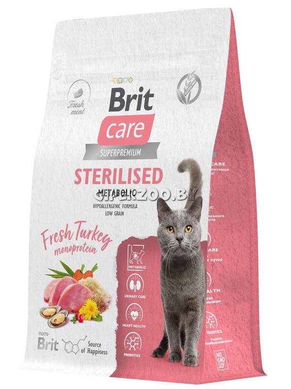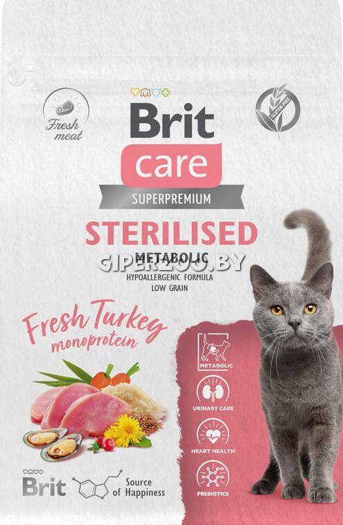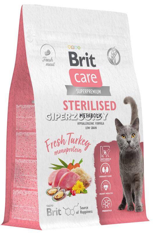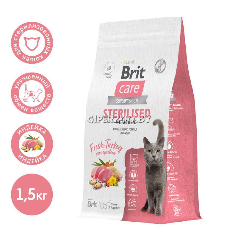 Брит Care Cat Sterilised Metabolic (индейка), 1,5 кг – полнорационный сухой корм суперпремиум-класса, специально разработанный для стерилизованных кошек. Корм с индейкой способствует улучшению обмена веществ, поддерживает активность и здоровье питомца на протяжении всего дня.