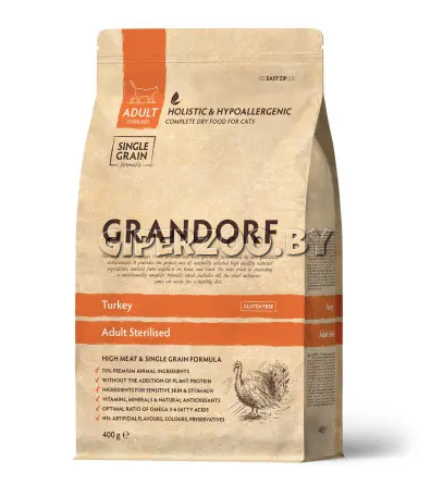 Сухой гипоаллергенный корм-холистик для взрослых стерилизованных кошек, кастрированных котов от 1 года и пожилых кошек с чувствительным пищеварением или склонных к аллергии.