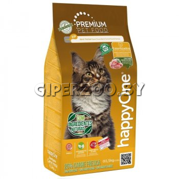 HappyOne Cat Sterilized Cat корм для стерилизованных кошек (курица), 10 кг - Premium произведен в Португалии и состоит из высококачественных натуральных ингредиентов средиземноморского региона, полезных для Ваших животных.