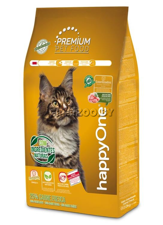 Сухой корм happyOne Premium произведен в Португалии и состоит из высококачественных натуральных ингредиентов средиземноморского региона, полезных для Ваших животных.Рационы happyOne Premium создаются на основе рекомендаций ведущих европейских ветеринарных экспертов и содержат необходимый комплекс витаминов, минералов и пищевых добавок для всех стадий жизни Вашего питомца.Корма для животных happyOne Premium соответствует стандартам качества Европейского Союза, что подтверждено наличием сертификата IFS Food с оценкой Высший уровень.Состав: Обезвоженный белок птицы (курица 25%), пшеница, кукуруза, свекольный жом (6%), мука из лосося (4%), мука из тунца, гидролизованный белок птицы,птичий жир, кукурузный глютен, минеральные вещества, волокна сахарного тростника (2%), дрожжи (источник МОС 500 мг/кг), Yucca schidigera (125 мг/Аналитический состав: сырой протеин – 34,0%, сырой жир – 9%, сырая зола – 8%, сырая клетчатка – 4%Добавки в 1 кг корма:Пищевая ценность: витамин А (ретинилацетат) — 20 000 МЕ, ви