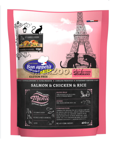 Bon Appétit Adulte Gourmand – это продукт богатый лососем, он способствует поддержанию здоровой и блестящей шерсти благодаря омега-3 и 6 жирным кислотам. Этот рецепт, специально разработанный для активных кошек, рекомендуется всем кошкам с высокими энергетическими потребностями. Его гранулы содержат высококачественные, легко усвояемые ингредиенты, такие как куриное мясо и жир, которые обеспечивают высокий уровень белка и наилучшие вкусовые качества и поедаемость.