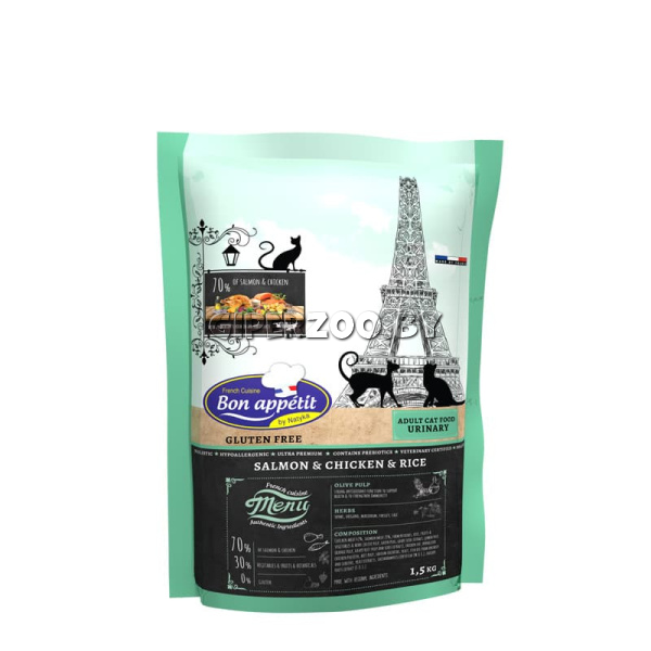 Bon Appétit Adult Urinary — это повседневный корм, созданный для обеспечения профилактики и сохранения здоровья мочевыводящих путей. Высокое содержание белка и точно рассчитанное количество энергии помогут поддерживать оптимальный вес. Высококачественная диета, ограничивающая возникновение инфекций мочевыводящих путей, разработанная для снижения рН мочи и стимулирования мочевыделения. Гранулы имеют яркий вкус лосося и курицы, что удовлетворит аппетит даже самых требовательных кошек.