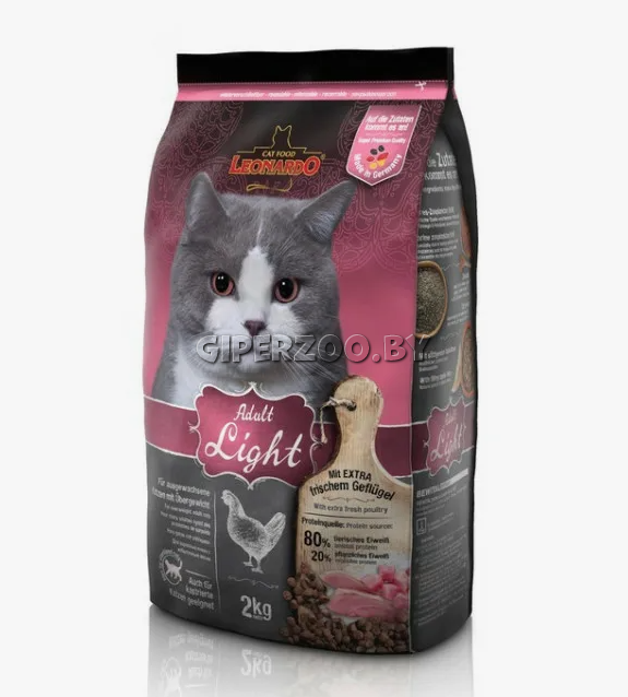 Leonardo Adult Light & Sterilised — это сухой корм супер-премиум класса для взрослых кошек с избыточным весом, а также для стерилизованных и кастрированных питомцев.