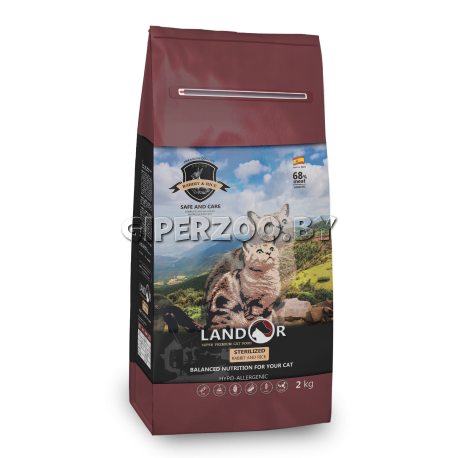 Корм LANDOR STERILIZED разработан специально для стерилизованных кошек. Набор химических элементов, содержащихся в нем, идеально подойдет для пищеварительной системы домашних питомцев. Главный ингредиент - мясо кролика, содержит много полезных витаминов и минералов, 19 аминокислот, в том числе и незаменимых. Данный корм улучшит состояние кожи, укрепит иммунитет, гарантирует набор всех необходимых химических веществ в рационе питания. Содержание L-карнитина обеспечит стабильный процесс пищеварения, что не даст вашему любимцу набрать избыточный вес, одновременно стимулирует рост мышц и синтез белков в организме.