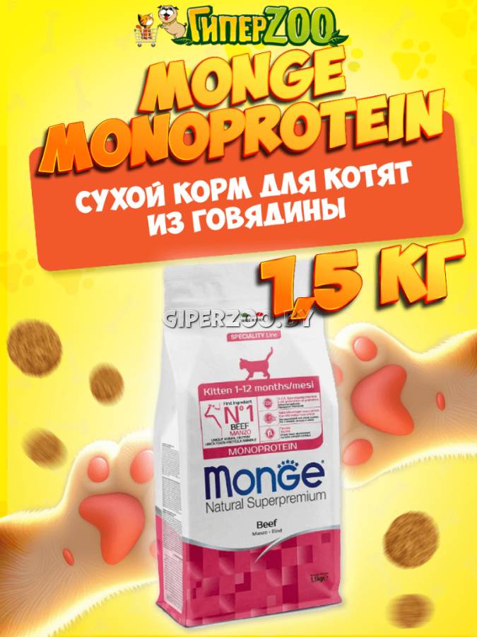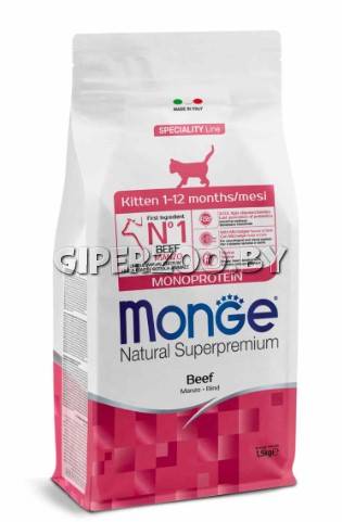 Monge Natural Superpremium Monoprotein Kitten Beef — полноценный и сбалансированный корм для котят. Специально разработан для хорошего самочувствия вашего котенка благодаря наличию масла микроводорослей (Schizochytrium sp.), источника ДГК для нервной и зрительной системы и таурина для правильного развития сердца.