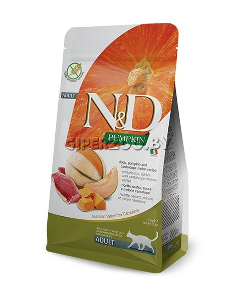 Farmina N&D GF Pumpkin Cat (Утка и мускусная дыня), 5 кг- беззерновой корм для взрослых кошек. В состав входит свежая утка, добавлены тыква, мускусная дыня, а также другие полезные для организма компоненты.