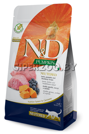 N&D GF Cat Pumpkin Lamb & Blueberry Adult NEUTERED, 5 кг - полнорационный корм для кастрированных и стерилизованных котов и кошек (ягненок, тыква и черника).