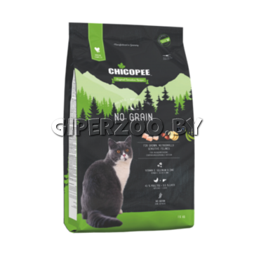 Chicopee HNL NO GRAIN (сухой беззерновой корм для кошек, 8 кг) - полноценное питание для взрослых котов, способствующее улучшению пищеварения, здоровью и долголетию животного.
