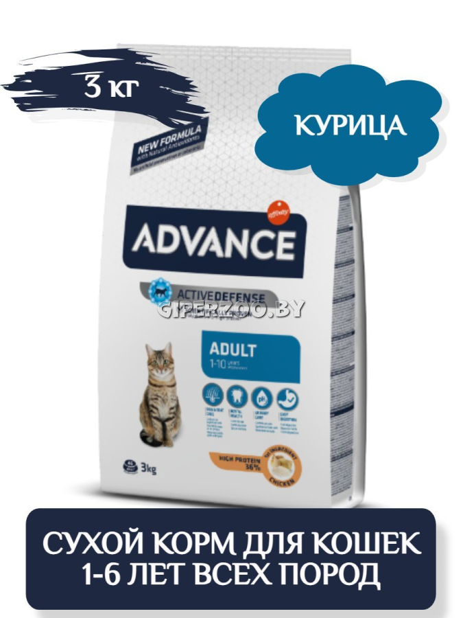 Advance Cat Adult (Курица и рис) - это высококачественный сбалансированный полнорационный корм для взрослых кошек от 1 до 10 лет, который содержит все необходимые вещества для поддержания хорошей физической формы.