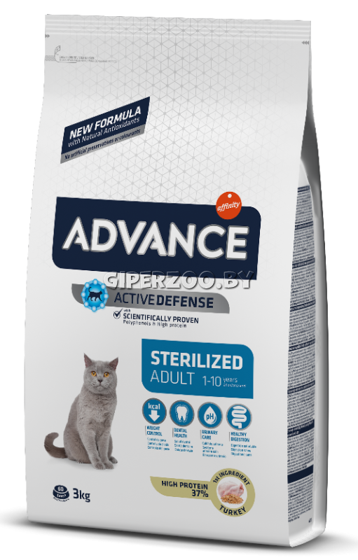 ADVANCE Sterilized Adult особенно рекомендуется для стерилизованных кошек, начиная с 1 года.