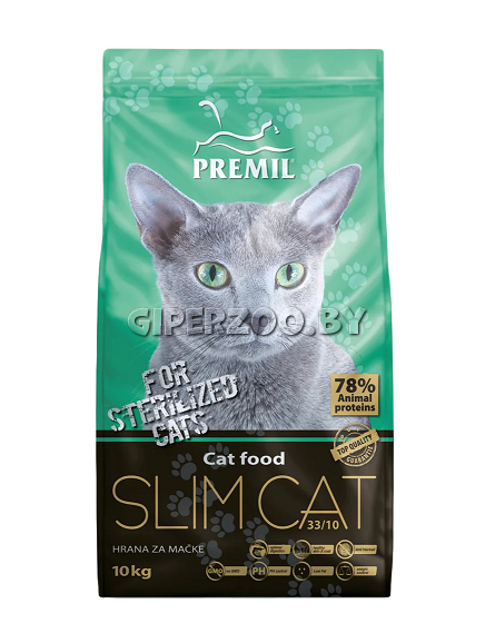 PREMIL Slim Cat SuperPremium (Премил СуперПремиум) Корм для стерилизованных кошек с мясом индейки и цыпленком, 10 кг