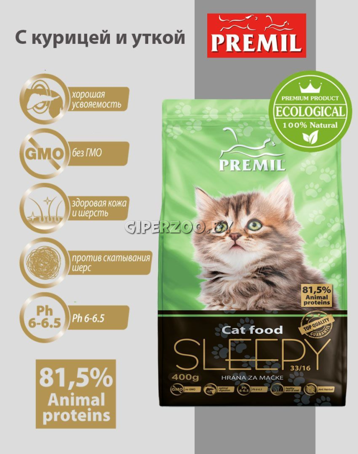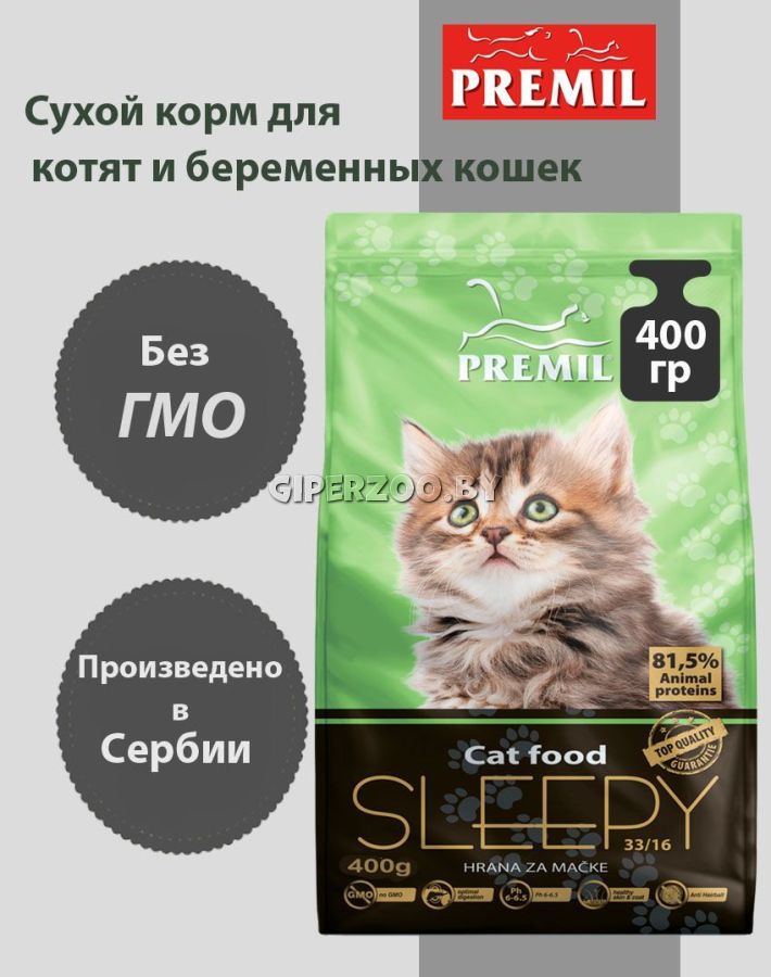 Premil Sleepy SuperPremium (Премил СуперПремиум) Корм для беременных кошек, котят, молодых кошек и кормящих кошек, 400 гр
