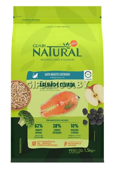 Guabi Natural Cat Sterilised сухой корм для стерилизованных кошек лосось и ячмень — полнорационный сухой корм для стерилизованных взрослых кошек.