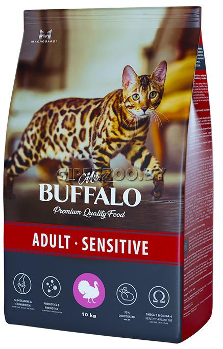 Mr.Buffalo Cat Adult Sensitive (Индейка) - полнорационный сухой корм с индейкой для взрослых кошек и котов с чувствительным пищеварением или привередливых в еде.