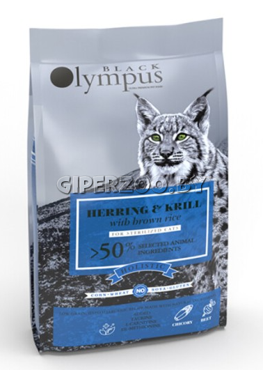 Black Olympus Cat Sterilised Herring & Krill — полнорационный корм с сельдью и крилем для стерилизованных кошек.