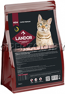 орм LANDOR SENSITIVE ADULT - полнорационный сухой корм для взрослых кошек с индейкой и уткй предназначен для животных с чувствительным пищеварением. Корм хорошо усваивается, поскольку содержит дегидрированное мясо, являющееся легкоусвояемым полноценным животным белком, насыщающим организм питомца не на