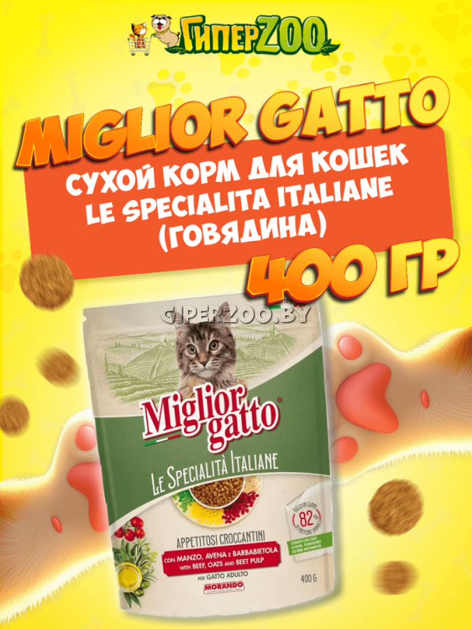 Miglior gatto Le Specialità Italiane (говядина, овес, свекла) - полноценный корм для взрослых кошек.