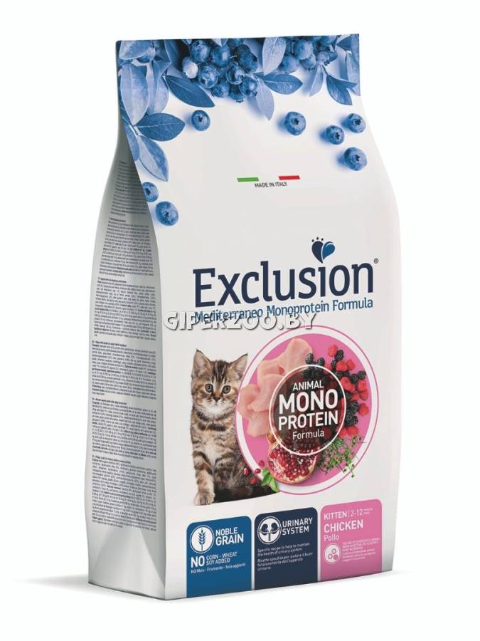 Сухой корм для котят EXCLUSION Monoprotein Kitten (цыпленок), 12 кг – повнорационный сбалансированный корм на основе высококачественного зерна и дегидрированного монопротеина животного происхождения.