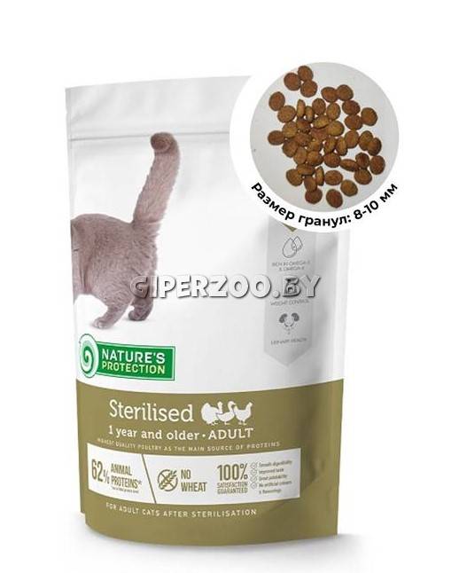 Добавки/1 кг: Пищевые добавки: витамин A (3a672a) – 25000 ME, витамин D3 (3a671) – 1875 ME, витамин E (3a700) – 688 мг, моногидрат сульфата железа (3б103) – 62,5 мг, безводный йодат кальция (3б202) – 1,9 мг, пентагидрат сульфата меди (3б405) – 6,3 мг, марганец сульфат моногидрат (3б503) – 25 мг, сульфат цинка моногидрат (3б605) – 143,75 мг, селенит натрия (3б801) – 0,125 мг, таурин (3a370) – 1250 мг, DL-метионин, технически чистый (3c301) – 1000 мг, L-карнитин (3a910) – 100 мг.