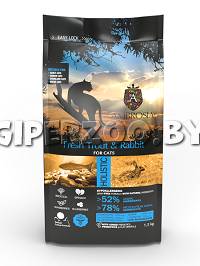 Свежая форель (30%), сушеный кролик (21%), сушеные картофельные хлопья, цельный горох, колотый горох, картофельный белок, сушеный жом свеклы, лигноцеллюлоза, сухие пивные дрожжи, гидролизованные дрожжи, масло лосося (1%), минеральные вещества, сушеный цикорий (естественный источник ФОС и инулина), сушеные яблоки, сушеная морковь, сушеная брокколи, сушеный шпинат, сушеные помидоры, сушеная клюква, сушеная черника, гидрохлорид глюкозамина (100 мг/кг), хондроитин сульфат (100 мг/кг). ), сушеные травы (Yucca schidigera, Rosemarinus sp, Curcuma sp, Citrus sp, Eugenia sp).