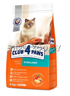 Club 4 Paws для взрослых стерилизованных кошек - это полноценное сбалансированное питание для взрослых кастрированных котов и стерилизованных кошек. Рацион содержит мясные ингредиенты No1, обогащен всеми необходимыми витаминами и минералами, комплексом Омега 3 + Омега 6, формулой ІNTEGRAMIX для прекрасного вида и здоровья вашего любимца. Сбалансированное соотношение белков и жиров, уменьшенная калорийность способствуют поддержке оптимального веса стерилизованных кошек и кастрированных котов. Специально рассчитанный баланс минеральных веществ способствует здоровью мочевыводящей системы.