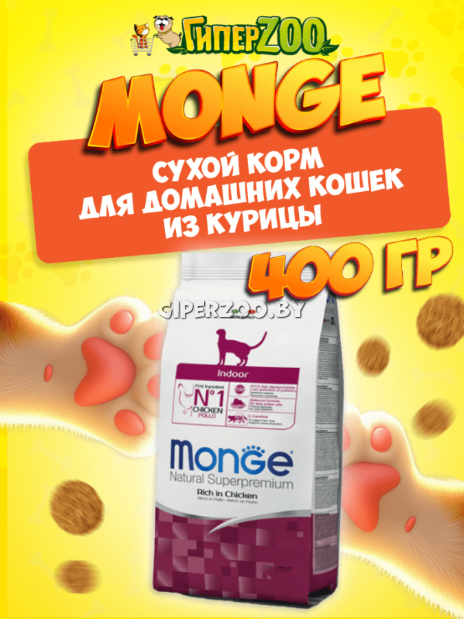 Monge Cat Indoor - это сбалансированный корм для взрослых домашних кошек с низким уровнем активности. Идеально подходит для введения в рацион кастрированных и стерилизованных животных, а также котов, склонных к полноте. L-карнитин помогает сохранить отличную физическую форму и активность, пониженное содержание жиров контролирует вес. Шелуха соевых бобов предотвращает ожирение, контролирует уровень сахара в крови и появление комков шерсти в желудке. Омега-3 и 6 жирные кислоты заботятся о коже и шерсти. ФОС И МОС улучшают пищеварение и поддерживают естественный баланс микрофлоры. Витамин А и таурин поддерживают здоровье сердца и глаз.