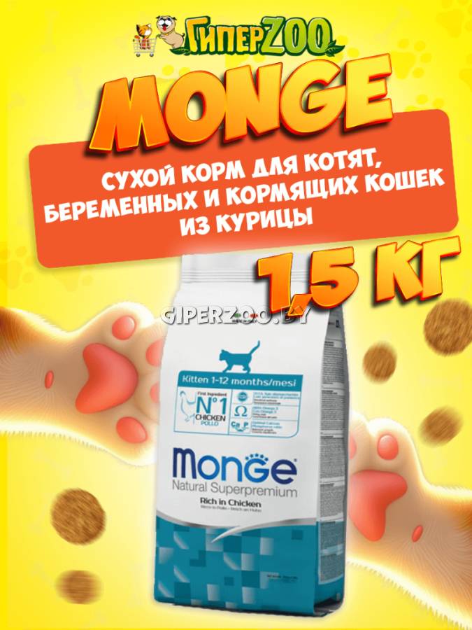 Monge Cat Kitten (Курица) - это сбалансированный корм для котят от 1 до 12 месяцев. Прекрасно подходит для кормления беременных и лактирующих кошек. В состав включены незаменимые антиоксиданты, укрепляющие иммунитет. Повышенное содержание жиров и белков помогает в развитии котенка, удовлетворяет повышенные потребности растущего организма и способствует формированию мышечных тканей. Для здоровья суставов и прочности скелета в корм добавлены фосфор и кальций, а Омега-3 и 6 жирные кислоты заботятся о коже и шерсти. Фос и Мос улучшают пищеварение и поддерживают естественный баланс микрофлоры.