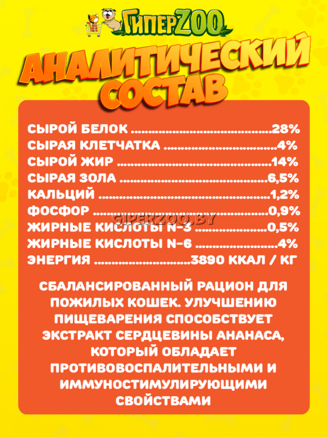 Омега-3 и 6 жирные кислоты заботятся о коже и шерсти. ФОС и МОС улучшают пищеварение и поддерживают естественный баланс микрофлоры.
