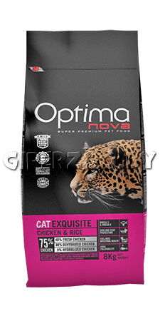 ПОЛНОЦЕННЫЙ КОРМ ДЛЯ ПРИВЕРЕДЛИВЫХ КОШЕК С 12 МЕСЯЦЕВ Optimanova Cat Exquisite Chicken & Rice специально разработан для удовлетворения потребностей привередливых кошек. Идеальное сочетание свежего куриного мяса и масла высочайшего качества гарантирует, что у вашей кошки всегда будет хороший аппетит. Поддерживает здоровье пищеварительной системы и повышает красоту вашей кошки.