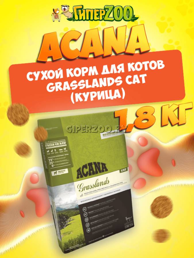 Корм ACANAGrasslands использует богатство местных ингредиентов: свежего ягненка, утку и индейку, выращенную на свободном выгуле, цельные яйца с местных ферм и свежевыловленную рыбу из местных озёр.