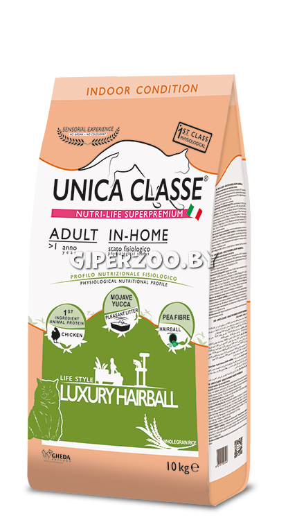 Unica Classe Adult In-Home Luxury Hairball (курица), 10 кг - это полноценный корм для взрослых домашних кошек старше 1 года.