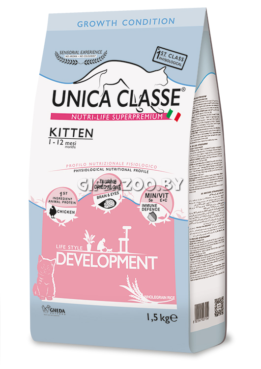 Unica Classe Kitten Development (курица), 1,5 кг- это полноценный корм для котят в возрасте от 1 до 12 месяцев.