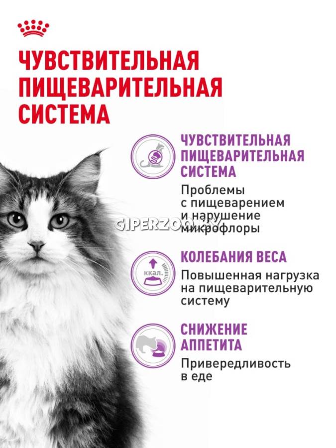Пищеварительная система некоторых кошек чувствительна к определенным типам питания.Если у вашей кошки отмечаются проблемы с пищеварением, то, возможно, потребуется пересмотреть ее рацион. ROYAL CANIN® Sensible 33 разработан для взрослых кошек в возрасте 1–7 лет с чувствительной пищеварительной системой и содержит уникальную комбинацию питательных веществ для обеспечения оптимальной работы пищеварения и пребиотики для поддержания баланса кишечной микрофлоры.