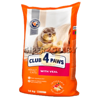 Club 4 Paws для взрослых кошек (Телятина) - это полноценное сбалансированное питание для взрослых кошек. Рацион содержит мясные ингредиенты No1, обогащен всеми необходимыми витаминами и минералами, комплексом Омега 3 + Омега 6 для здоровой кожи и блестящей шерсти и формулой ІNTEGRAMIX для прекрасного вида и здоровья вашего любимца. Состав: мука из курицы 28 %, кукуруза, рис, клейковина кукурузная, подсолнечное масло, мясо и продукты животного происхождения из телятины 4 %, жир животный (с добавлением токоферолов), протеин гидролизованный животный, клетчатка свекольная, минералы, масло лосося 0,5 %, дрожжи пивные, семена льна 0,29 %, банан* 0,23 %, помидоры* 0,2 %, боярышник* 0,065 %, имбирь* 0,01 %.