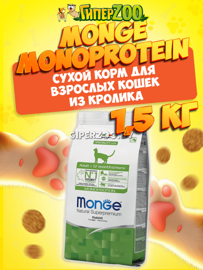 Monge Monoprotein Adult cat (кролик), 1,5 кг