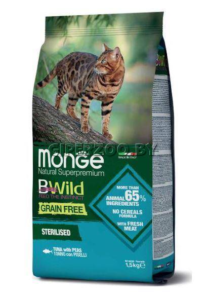 Monge Cat Bwild Grain Free Sterilized (Тунец), 1,5 кг - это полноценный сбалансированный рацион из тунца. Формула разработана специально для стерилизованных кошек. Корм содержит лекоусвояемые компоненты, такие как тунец и горох. Оптимальный баланс питательных веществ и умеренное содержание калорий способствуют профилактике ожирения у кошек, ведущих малоподвижный образ жизни.