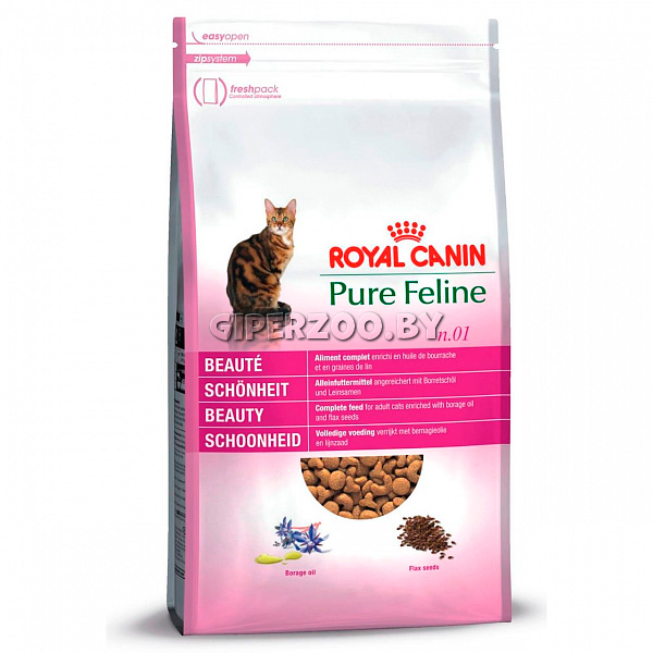 Royal Canin Pure Feline Beauty - это полнорационный корм для кошек от 1 года. Он способствует красоте шерсти и здоровью кожи. Корм удовлетворяет все питательные потребности кошек. Так как кошки домашнего содержания линяют круглый год, для них особенно важен уход за шерстью и кожей, в том числе правильный рацион. Состав: дегидратированное мясо утки, белый рис, очищенный овёс, животные жиры, пшеничные отруби, пшеничный глютен, кукурузный глютен, пивные дрожжи, гидролизат печени, минеральные вещества, рыбий жир, семена льна, экстракт цикория, мякоть яблока, DL-метионин, масло огуречника, таурин, экстракт красного винограда, яичный порошок, экстракт паприки, экстракт бархатцев прямостоячих.