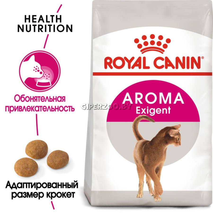 Royal Canin Aroma Exigent — сухой корм для привередливых кошек с особо развитым обонянием. У каждой кошки есть свои естественные предпочтения при выборе корма: ароматический профиль, разнообразие текстуры и формы крокет и содержание белков. AROMA EXIGENT создан специально для привередливых в питании кошек в возрасте от 1 до 7 лет, для которых особенно важен аромат продукта.