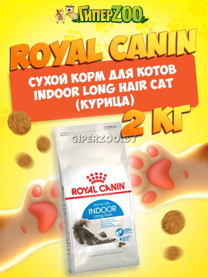 Сухой корм для котов Royal Canin Indoor Long Hair, 2 кг - подходит кошкам в возрасте от 1 до 7 лет, постоянно живущим дома, и имеющим длинную шерсть.