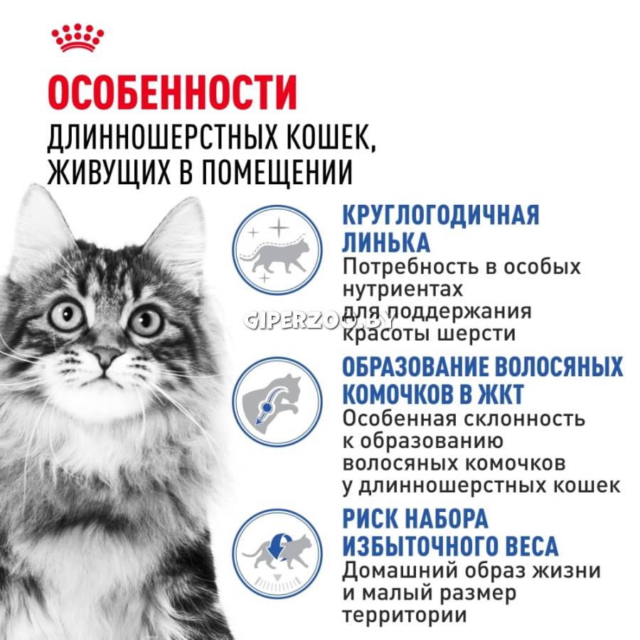 Образ жизни кошки, постоянно живущей в помещении, и ее длинная шерсть - факторы, обуславливающие необходимость специального питания.