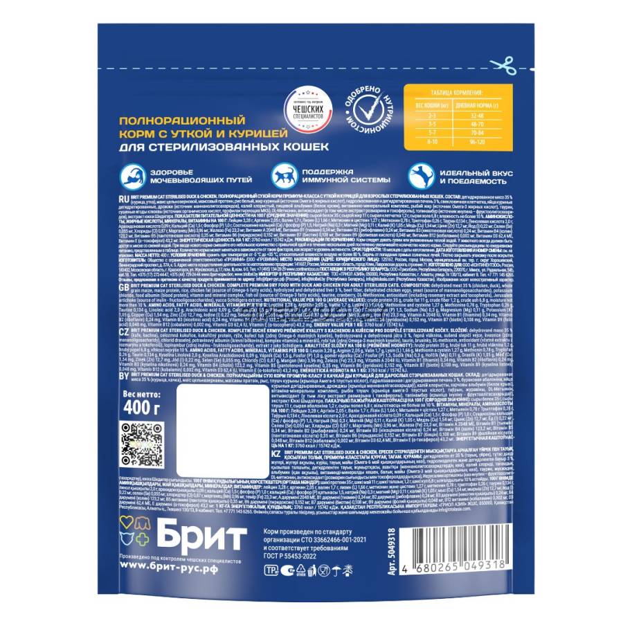Брит Премиум Сухой корм для взрослых стерилизованных кошек с уткой и курицей Cat Sterilised Duck&Chicken (Brit Premium) - предназначен для взрослых стерилизованных кошек. Сбалансированный состав содержит все витамины и минералы, необходимые для ежедневного здорового питания вашего питомца. Корм поможет сохранить здоровье и активность вашего питомца, а мясо в составе обеспечивает притягательный аромат и вкус, который не оставит равнодушным даже самых привередливых питомцев.