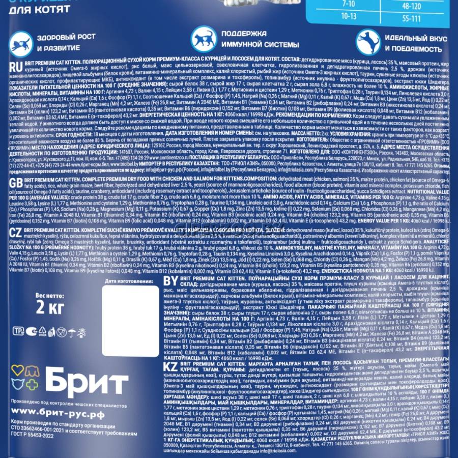 Брит Премиум Сухой корм для котят с курицей Cat Kitten (Brit Premium) - это сбалансированный рацион премиум-класса, подходящий для котят. Предназначен для котят всех пород. Сбалансированный состав содержит все витамины и минералы, необходимые для ежедневного здорового питания вашего питомца. Корм обеспечивает оптимальные условия для роста и развития мышц, а мясо курицы в составе обеспечивает притягательный аромат и вкус, который не оставит равнодушным даже самых привередливых питомцев.