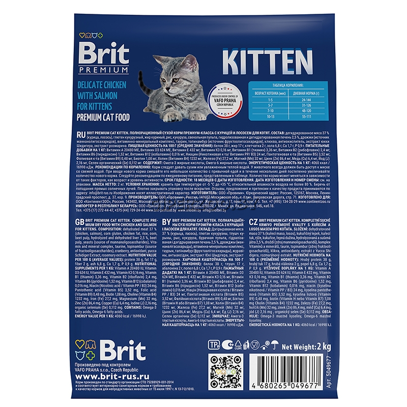 Brit Premium Cat Kitten (Курица), 2 кг - это сбалансированный рацион премиум-класса, подходящий для котят. Предназначен для котят всех пород. Сбалансированный состав содержит все витамины и минералы, необходимые для ежедневного здорового питания вашего питомца. Корм обеспечивает оптимальные условия для роста и развития мышц, а мясо курицы в составе обеспечивает притягательный аромат и вкус, который не оставит равнодушным даже самых привередливых питомцев.