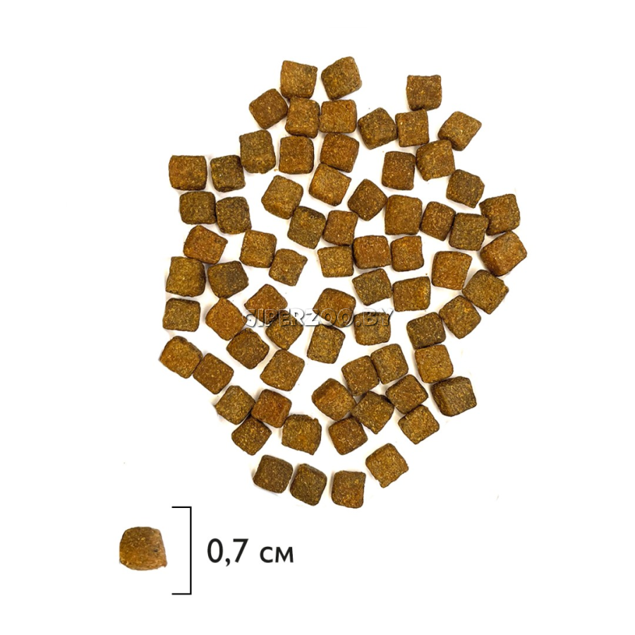 курица 40 % (сушеная курица 22 %, мука из куриного мяса 18 %), рис, куриный жир (консервирован токоферолами), кукуруза, пивные дрожжи, соус из лосося 4 %, соус из куриной печени 2 %, рыбий жир из лосося 1 %, сушеная свекольная пульпа, сушеный одуванчик 0,25 %, пребиотики (маннанолигосахариды 150 мг/кг, фруктолигосахариды 120 мг/кг), экстракт юкки (yucca schidigera) (80 мг/кг), экстракт фруктов и трав (розмарин, гвоздика, цитрус, куркума, 60 мг/кг).