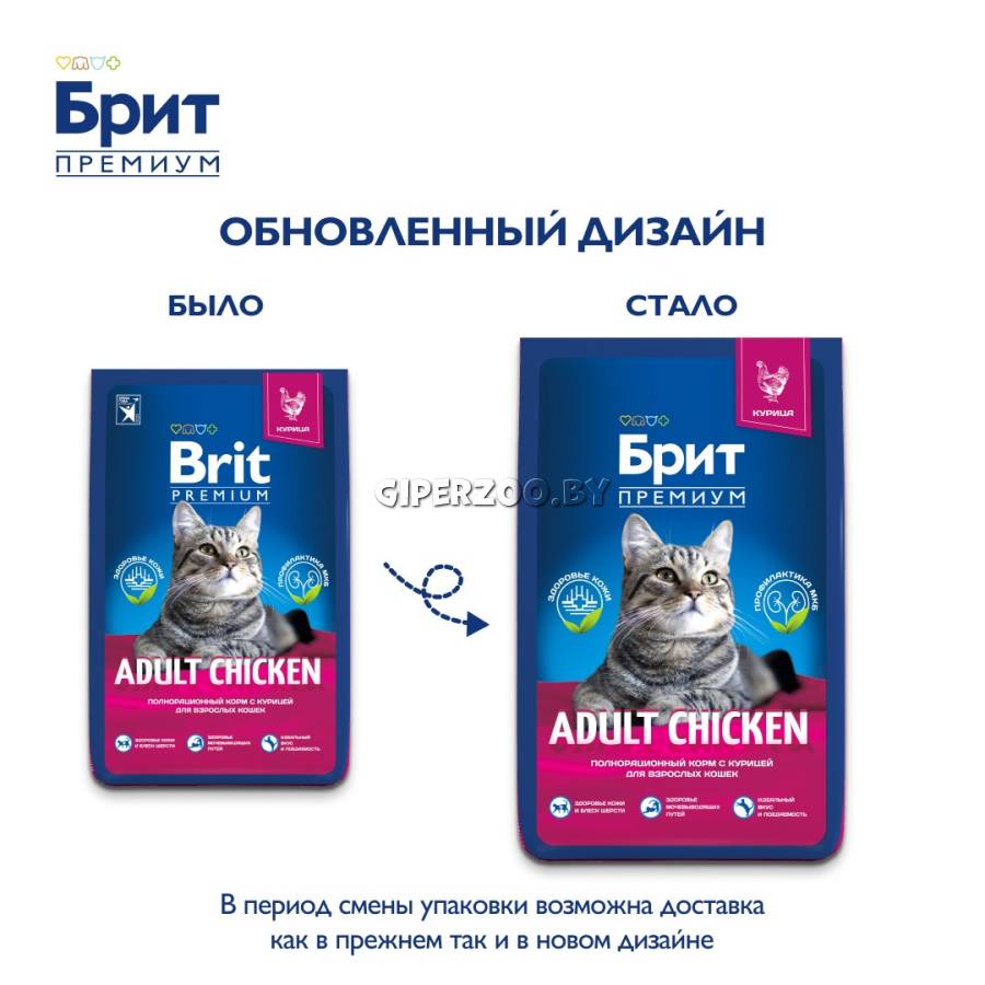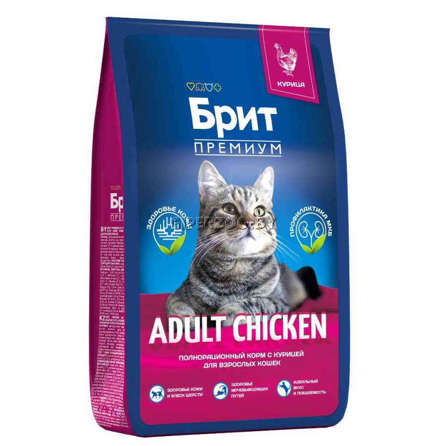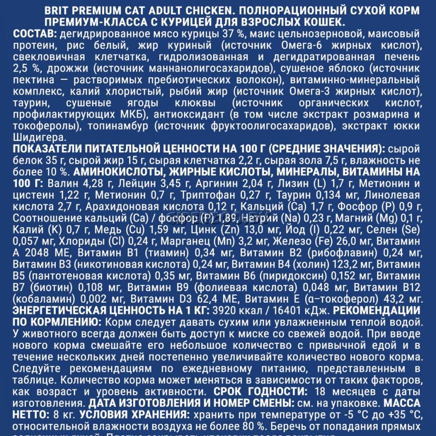 Брит Премиум Сухой корм для взрослых кошек с курицей Cat Adult Chicken (Brit Premium) - сухой корм предназначен для взрослых кошек всех пород.