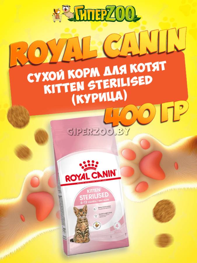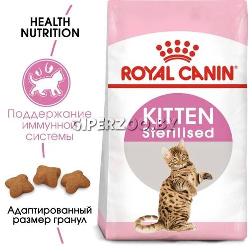 ROYAL CANIN® Kitten Sterilised разработан с учетом потребностей растущих котят: ведь это определяющий период в их развитии. Нутриенты, укрепляющие естественный иммунитет котенка, поддержат его здоровье при переходе ко второй фазе роста. В состав корма ROYAL CANIN® Kitten Sterilised входит особая комбинация белков, витаминов и минеральных веществ, а также запатентованный комплекс антиоксидантов. Состав: изолят растительных белков*, растительная клетчатка, дегидратированные белки животного происхождения (птица), мука из зерновых культур, рис, животные жиры, гидролизат белков животного происхождения (вкусоароматические добавки), пшеница, минеральные вещества, соевое масло, дрожжи и побочные продукты брожения, рыбий жир, оболочка и семена подорожника, фруктоолигосахариды (0,36 %), гидролизат дрожжей (источник мaннановых олигосахаридов), экстракты дрожжей (источник бета-глюканов), экстракт бархатцев прямостоячих (источник лютеина).