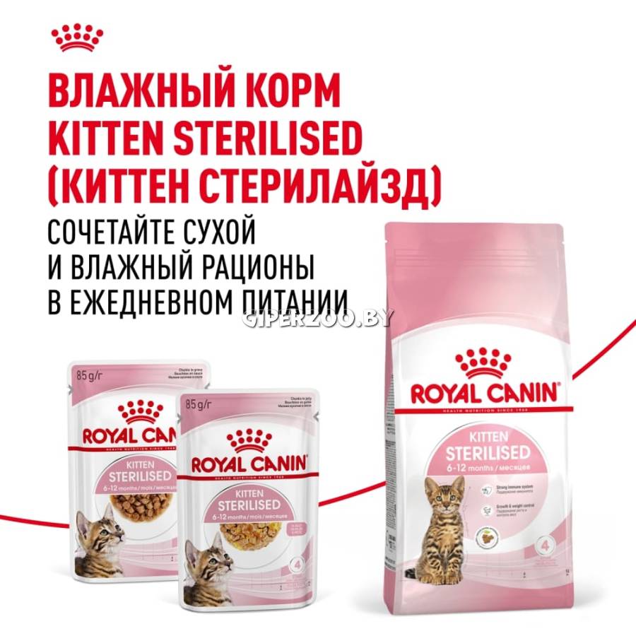 Киттен стерилайзд: сухой корм для стерилизованных котят в возрасте от 6 до 12 месяцев. Уже через 48 часов после кастрации или стерилизации аппетит котенка может существенно возрасти. KITTEN STERILISED предназначен для кастрированных/стерилизованных котят в возрасте до 1 года, склонных к набору избыточного веса.