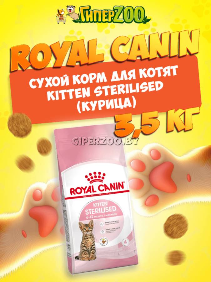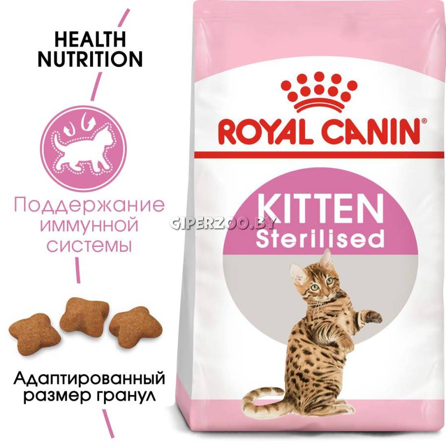 Сухой корм для котят ROYAL CANIN® Kitten Sterilised, 3,5 кг - корм разработан с учетом потребностей растущих котят: ведь это определяющий период в их развитии. Нутриенты, укрепляющие естественный иммунитет котенка, поддержат его здоровье при переходе ко второй фазе роста.